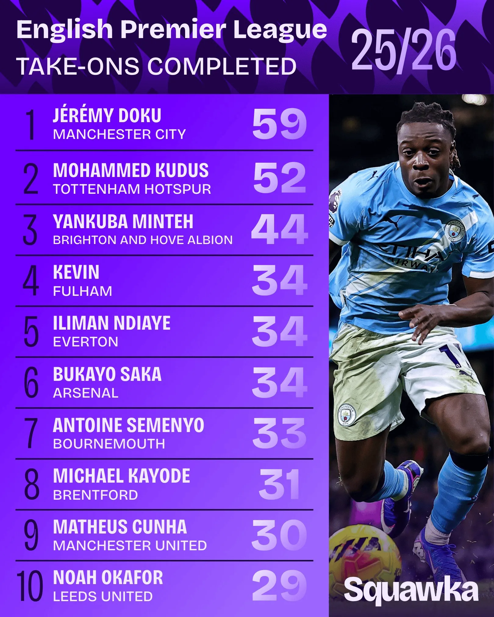 1.多库(曼城)59次