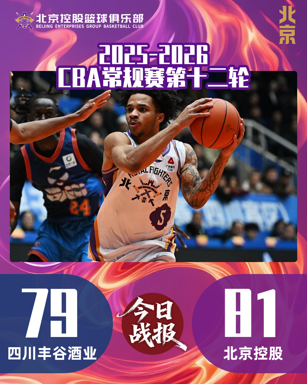 本场比赛,北控男篮多次取得比分领先,但却未能进一步拉开分差,下半场,四川队打出一波强势进攻将比分赶上,战至比赛末段,双方一度打成79平。关键时刻,里勒凭借持球突破帮助北控再度取得领先,朱松玮在最后一攻中抢下关键前场篮板,成功消耗了对手的进攻时间。随着四川队中场绝杀偏出,北控男篮从客场艰难带走胜利。