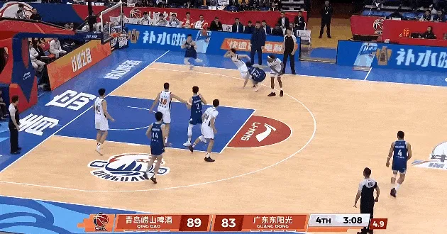 CBA常规赛,广东对阵青岛的比赛正在进行中。