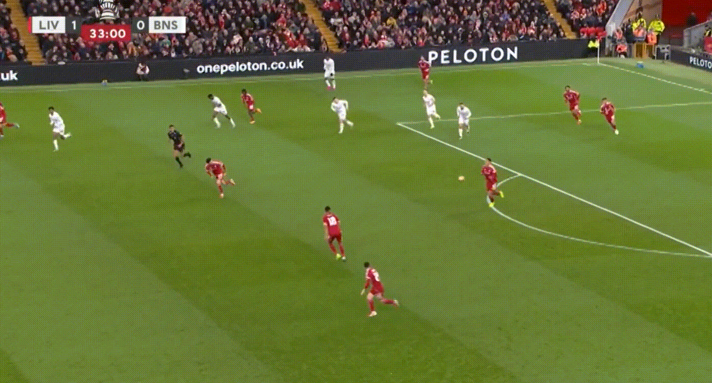第34分钟,加克波接球,从后场一直推进到禁区前并完成分球。只穿一只鞋的加克波还积极完成了前插。可惜这次进攻最终没有造成威胁。