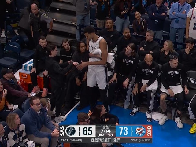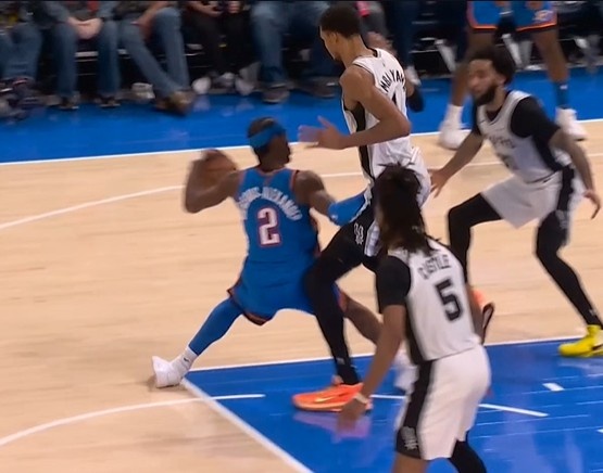 GIF-亚历山大突破文班进攻犯规 后者倒地捂住膝盖