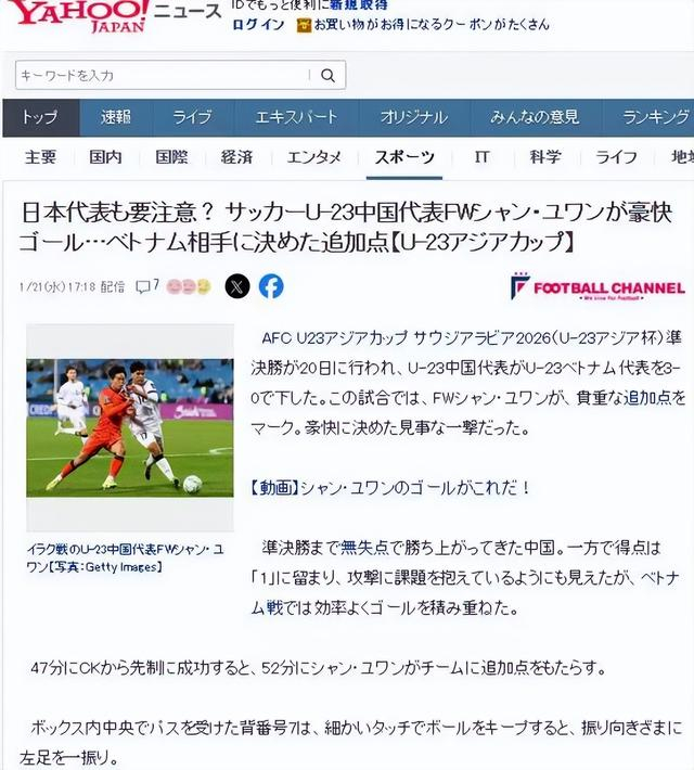第三个,他们还对中国几位明星球员印象深刻。日本媒体专门发文报道了向余望,认为他对越南的精彩远射体现了他高超的射术,日本必须小心。还有很多球迷评论说,我不知道他的名字,但那位戴着队长袖标的中国球员踢得真不错。